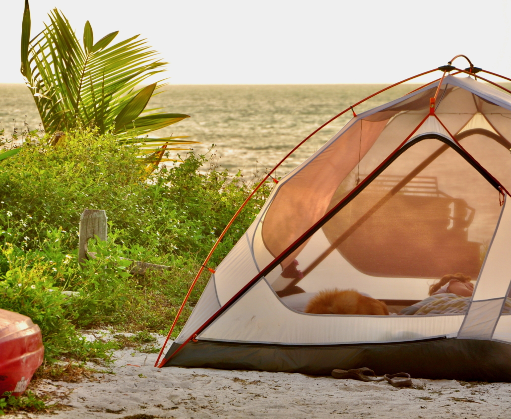 We are three snow-loving Coloradans spending the month of December barefoot and sticky in South Florida. It doesn’t take long for us to fall in love with the minerally feel of salt water, pastel-pink skies, any cold beverage with fresh lime, and that brilliant color of sunrise on ocean water that is impossible to name. We park-hop down the 125-mile chain of islands, eventually crossing all forty-seven bridges, which make up the Florida Keys, reserving tent-only sites in the campgrounds. The extra schlep from the rig to the more secluded tent-camping site is always worth it to us.