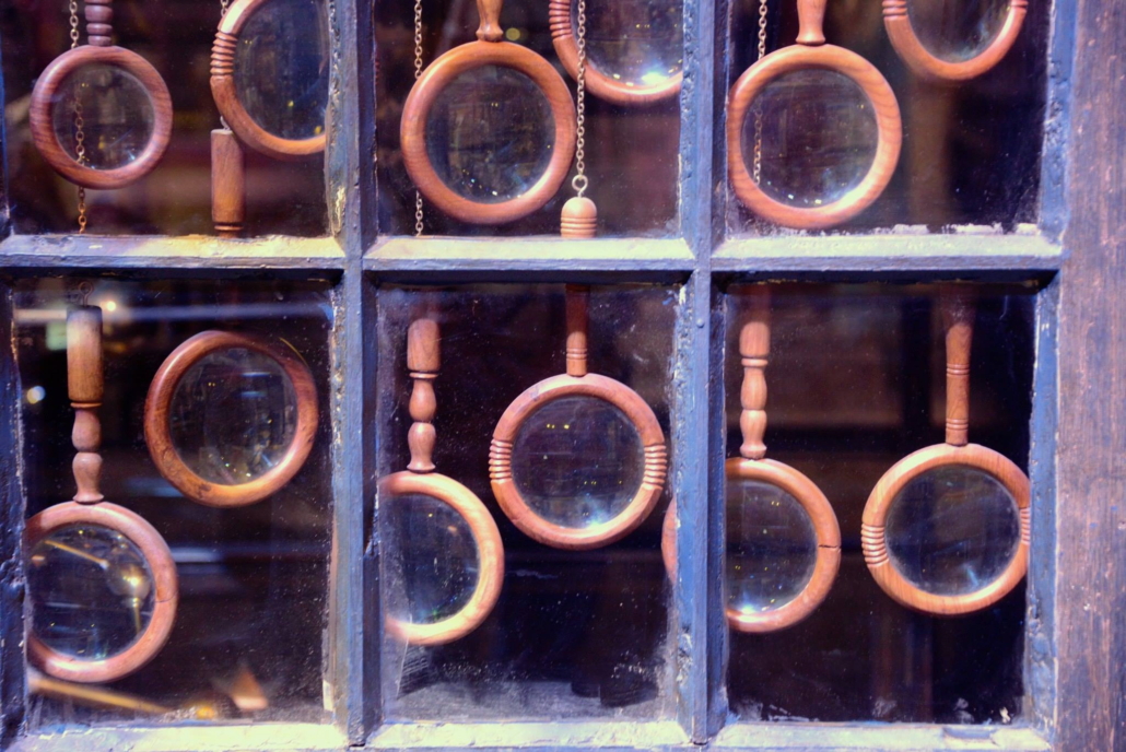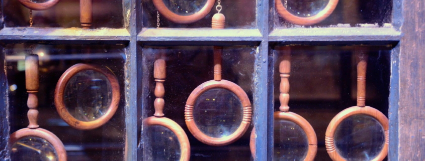 * Binoculars and magnifying glass